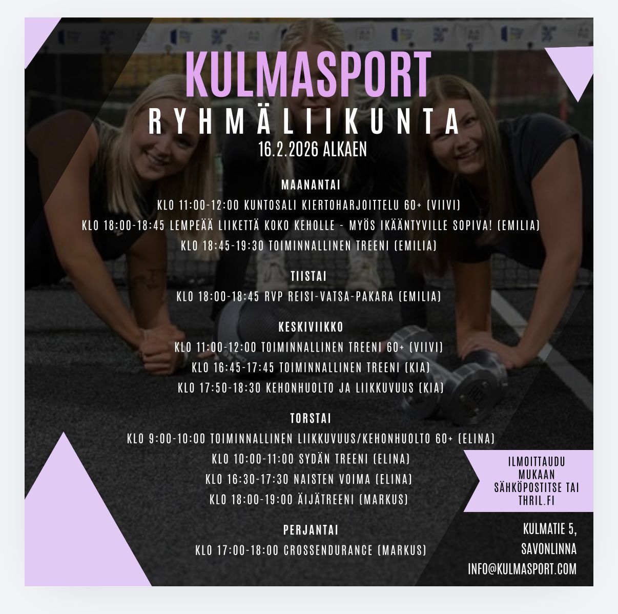 tai sovelluksesta tai sähköpostilla: info@kulmasport.com